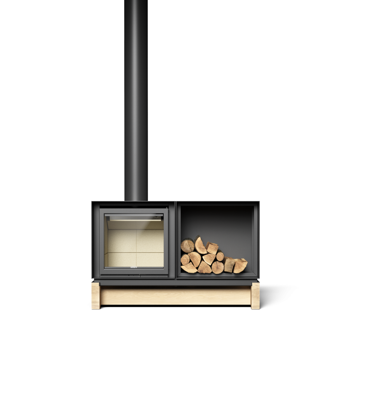 Illustration avec arrivée d'air directe sous le foyer : une seule commande pour régler les 3 arrivées d’air. L'arrivée d'air extérieur peut également être située à l'arrière de l'appareil.