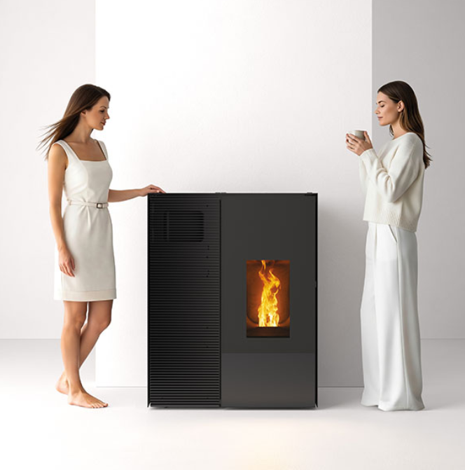 EIKO 365 est un poêle à granulés innovant qui offre un confort thermique toute l'année, combinant la puissance d'un système de chauffage pour l'hiver avec l'efficacité d'un climatiseur pour l'été. Grâce à sa technologie avancée, il s'adapte aux saisons avec une gestion intelligente de la température.