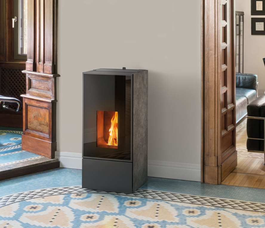 Il s'agit d'un poêle ventilé, le modèle le plus classique de poêle à pellets. Un seul ventilateur, puissant mais silencieux, distribue de manière optimale l'air chaud dans la pièce où le poêle est installé, la rendant ainsi chaude et confortable en quelques minutes. Selon le degré d'isolation de la maison et la répartition des espaces, ce poêle peut chauffer même de très grandes pièces. Vous choisissez la puissance de ventilation en fonction de vos besoins. Un souffle chaud et puissant pour chauffer plus vite ou un murmure à peine perceptible, si vous devez seulement maintenir la température.