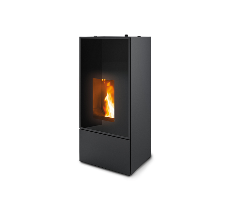 Il s'agit d'un poêle ventilé, le modèle le plus classique de poêle à pellets. Un seul ventilateur, puissant mais silencieux, distribue de manière optimale l'air chaud dans la pièce où le poêle est installé, la rendant ainsi chaude et confortable en quelques minutes. Selon le degré d'isolation de la maison et la répartition des espaces, ce poêle peut chauffer même de très grandes pièces. Vous choisissez la puissance de ventilation en fonction de vos besoins. Un souffle chaud et puissant pour chauffer plus vite ou un murmure à peine perceptible, si vous devez seulement maintenir la température.