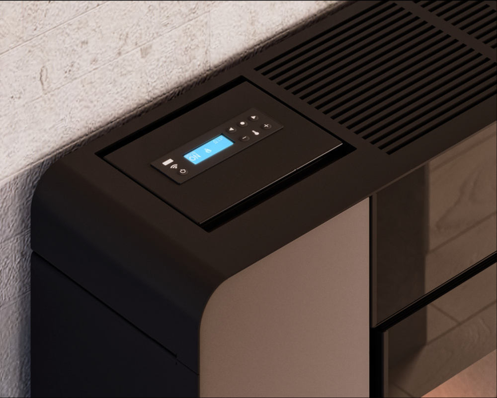 Contemporain et élégant, avec un cadre en acier. Essentiel et riche en matière, rehaussé par un panneau latéral évocateur en pierre précieuse, métal ou verre, Elle Plus devient un véritable accessoire d’ameublement. Évacuation des fumées : supérieure, arrière en option, coaxiale en option. Flexibilité de la canal. en fonction des exigences contextuelles.