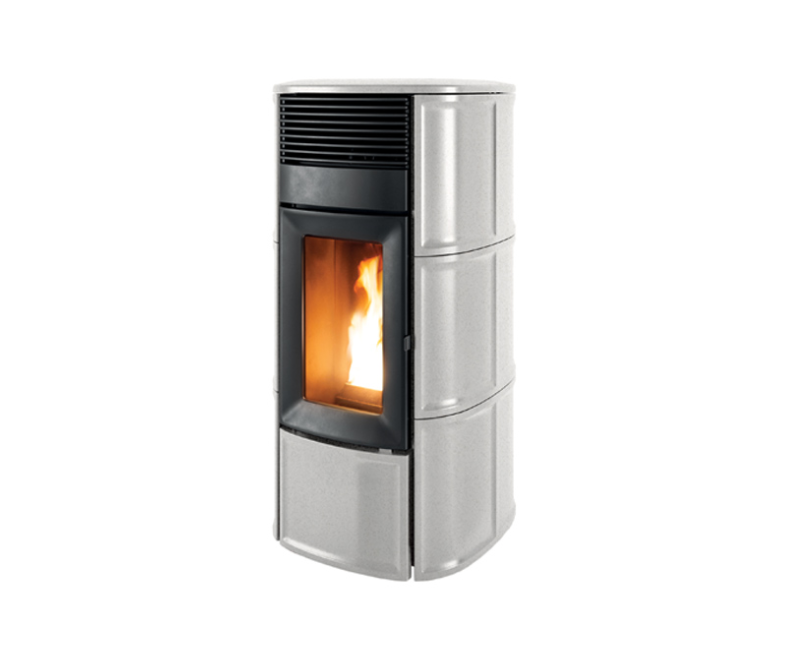 Poêle à granulé réalisé avec une structure en acier, couvercle et flancs en céramique (Warm Grey, Bordeaux). Restyling 2021 avec un tout nouveau design qui rehausse l’esthétique de la flamme. Grâce à la technologie Maestro+, il est possible de gérer le poêle directement depuis un smartphone, via une application dédiée qui permet un contrôle complet du poêle aussi bien à l’intérieur qu’à l’extérieur de la maison, en se connectant au réseau Internet domestique (routeur) ou directement via Bluetooth. Innovant et monté sur le couvercle, un panneau de contrôle numérique escamotable est également disponible de série.